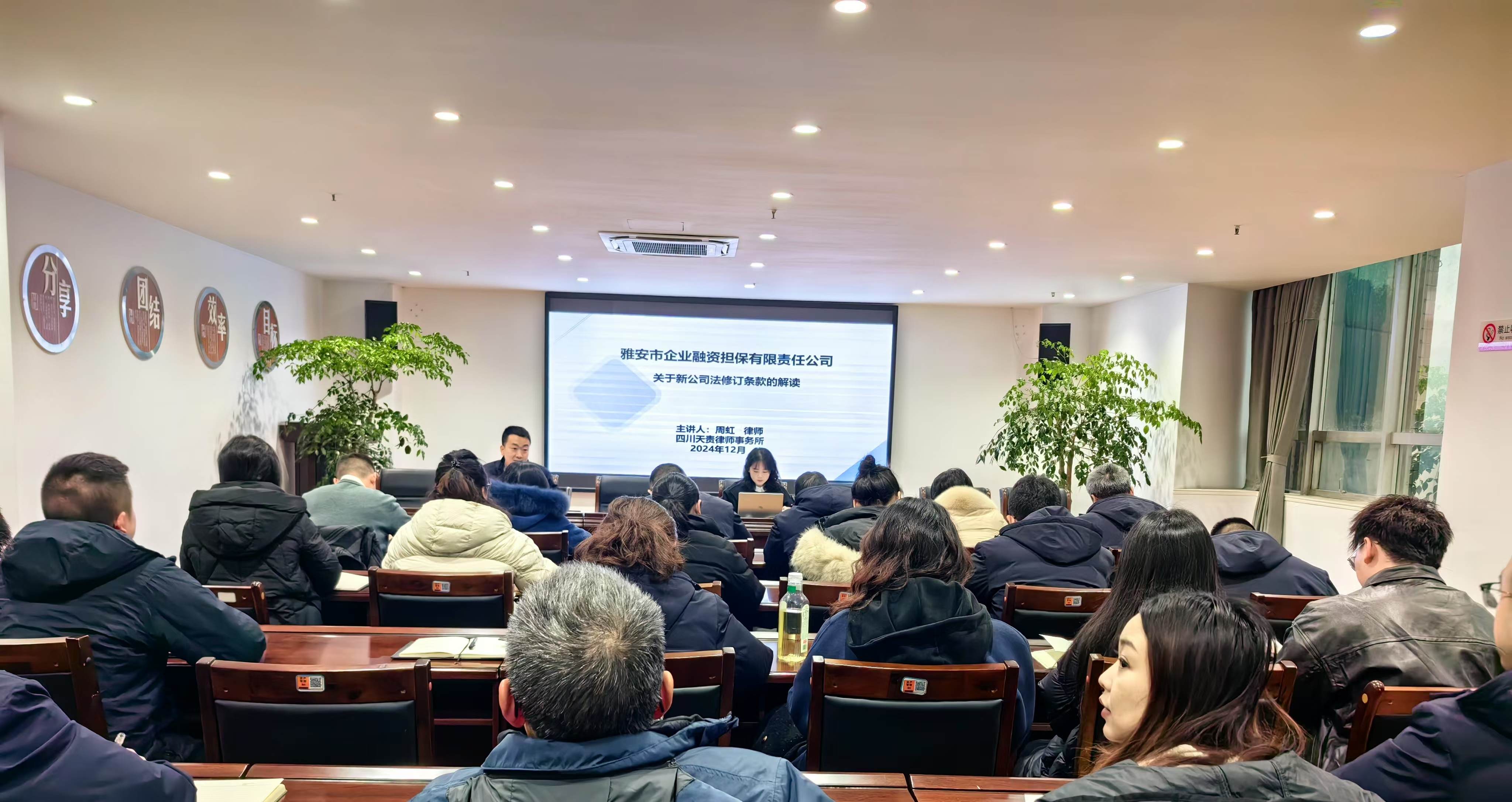 新修訂的《中華人民共和國公司法》已于2024年7月1日正式施行。為做好新舊法條的銜接工作,幫助公司精準(zhǔn)把握新公司法的核心要義,提高公司在復(fù)雜市場(chǎng)環(huán)境中防范和化解法律風(fēng)險(xiǎn)能力,2024年12月13日上午,市擔(dān)保公司特邀請(qǐng)具備豐富法律實(shí)踐經(jīng)驗(yàn)的周虹律師,組織開展了新《公司法》專題學(xué)習(xí)培訓(xùn)講座。
